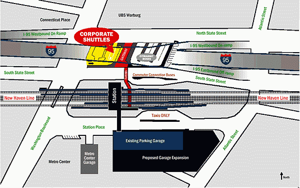 LOCATION OF THE CORPORATE SHUTTLE BUS PICKUPS AND DROP-OFFS AT THE